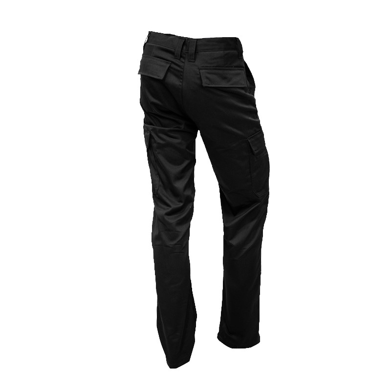 Pantalón cargo cintura elasticada, bolsillo tipo argentino, bolsillos de parche en los costados bajo las caderas con fuelle y en parte trasera, todos con tapetas y velcro, 5 pasadores y costuras reforzadas.